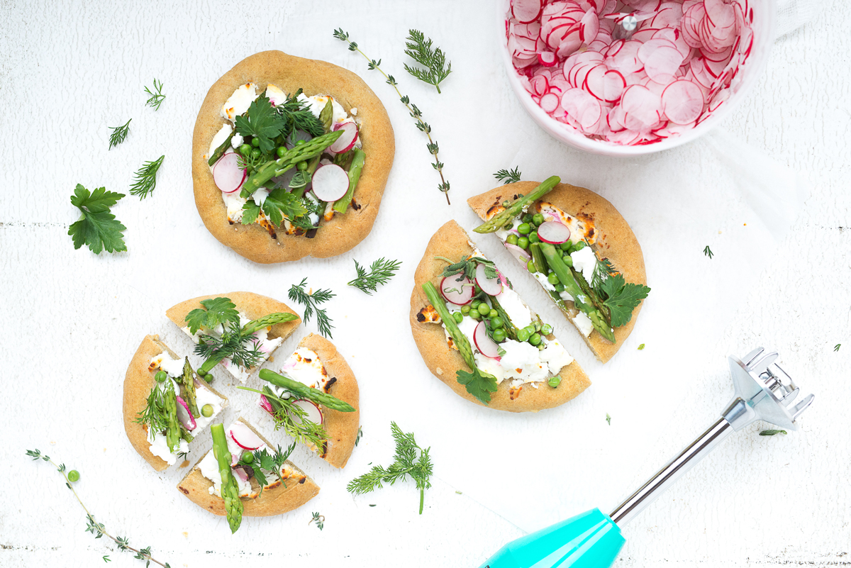 Flatbreads met olijfolie, seizoensgroen en kruiden