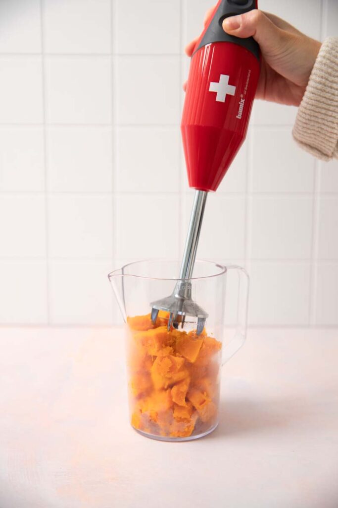 - Commencez par préparer la purée de potimarron.