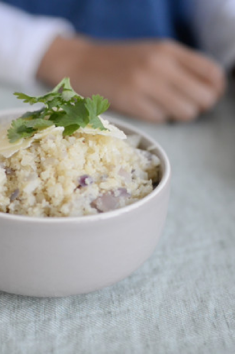 6 Serveer de bloemkool rijst met wat peterselie en parmesaan kaas.